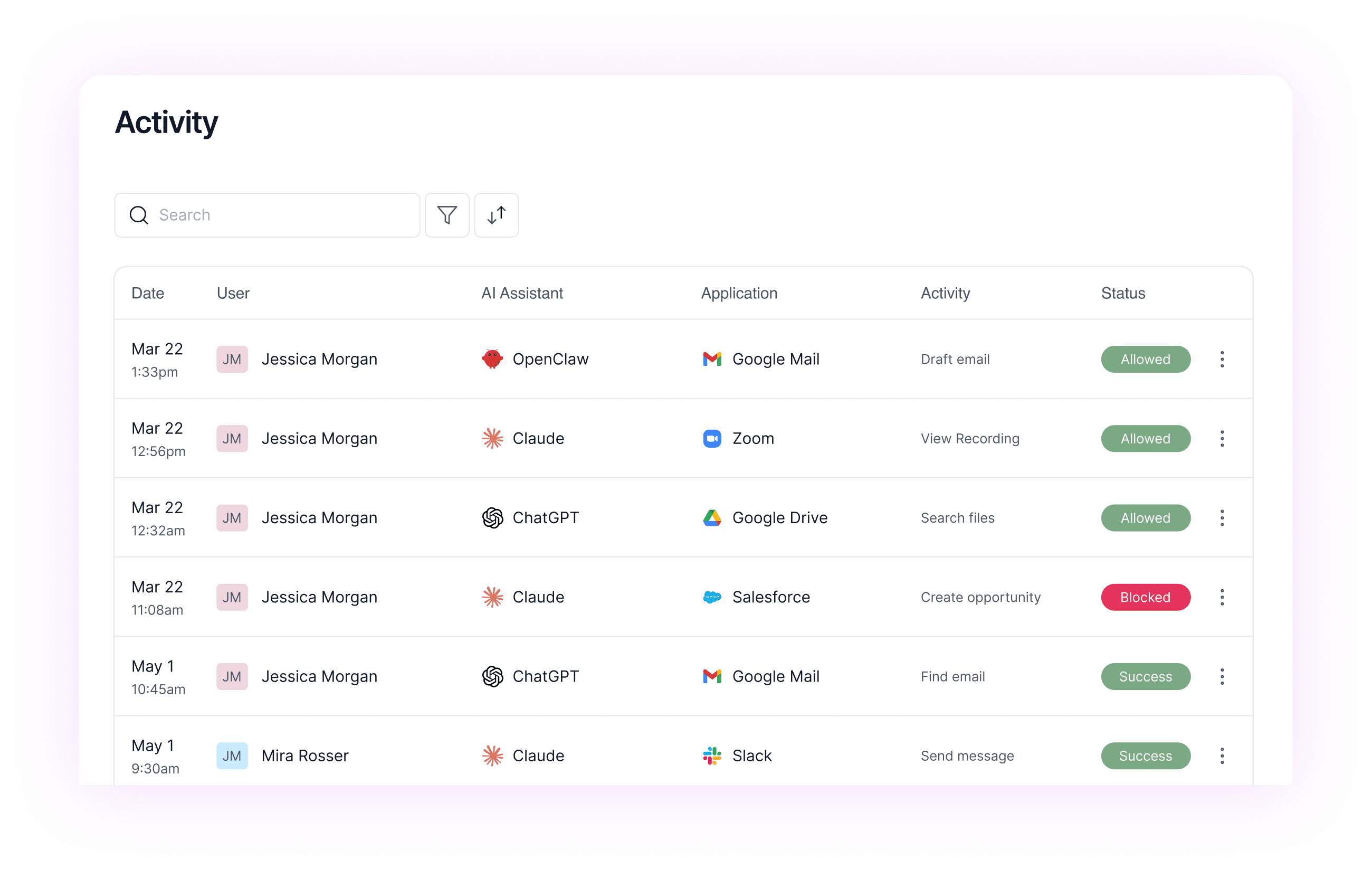 Track activity logs for every AI action across your apps based on your rules